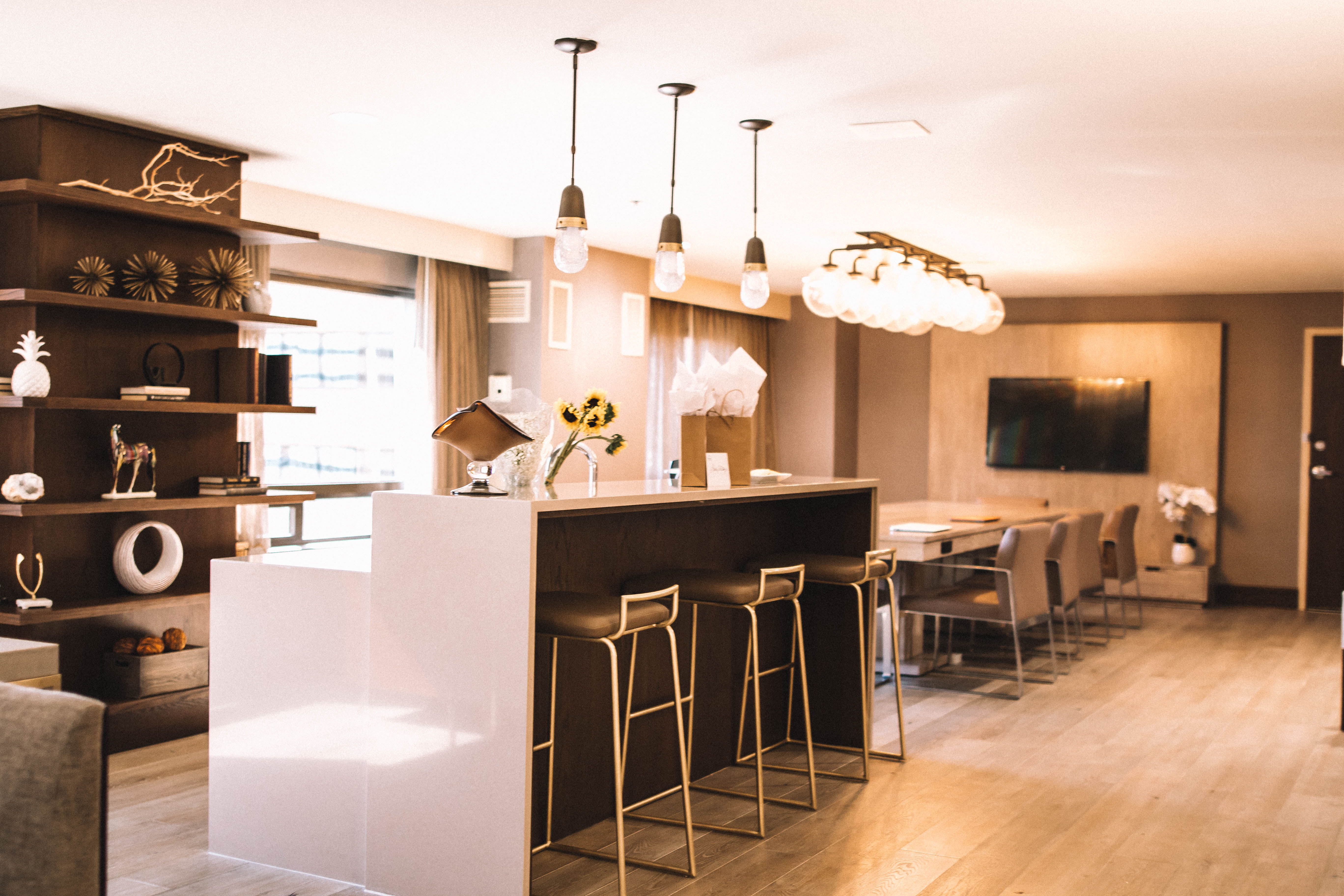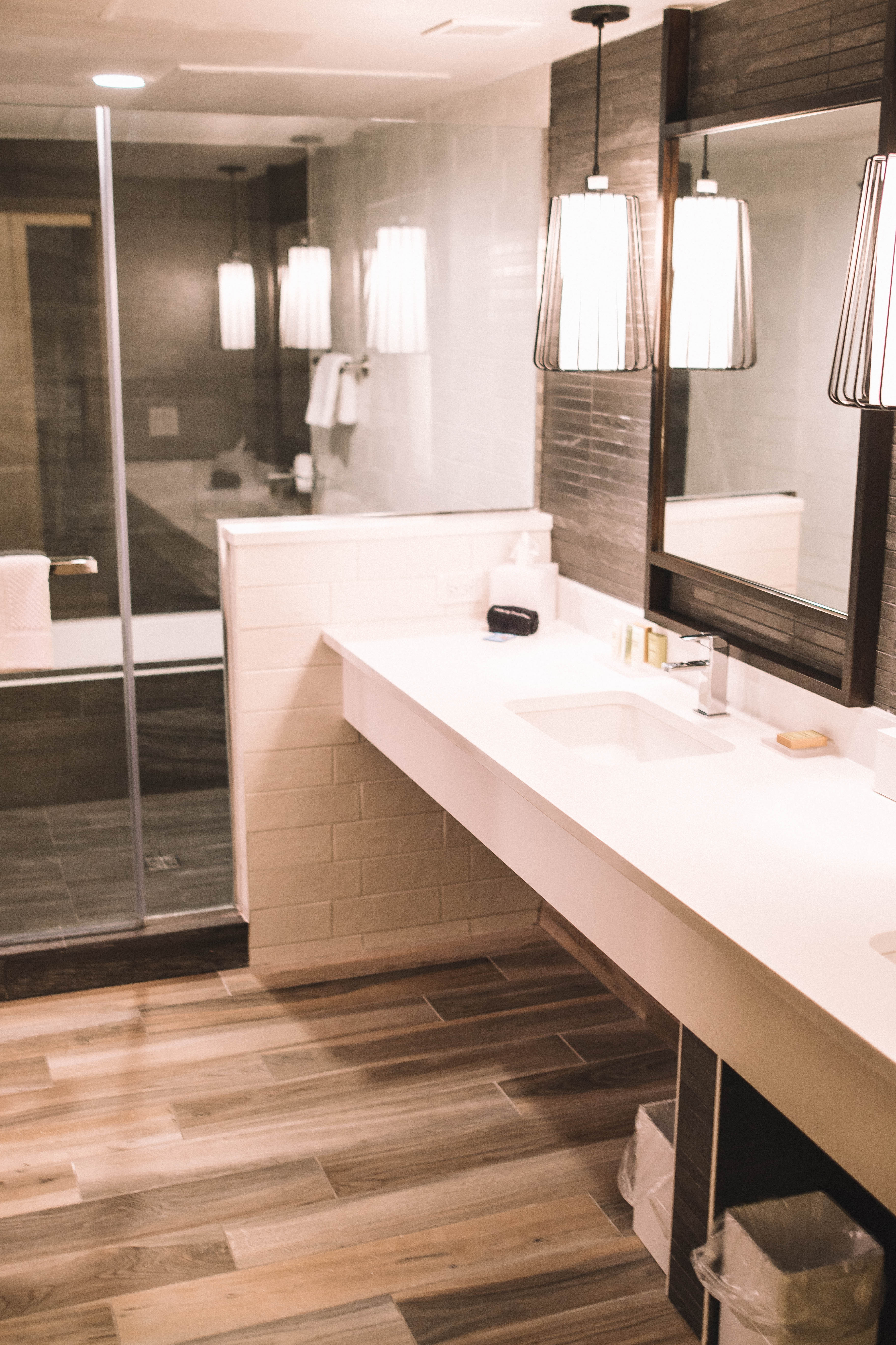 After a quick and easy check in, Willie the bellman took our luggage to our we found out that they Hilton upgraded us to the Presidential suite! We had no idea what that actually meant until we took our first steps into our room.  We about DIED.  The suite was absolutely stunning and quite honestly bigger than my first apartment.  Hilton does not mess around.  There was a full kitchen, conference space with a large table and TV, a spacious living room with a large section and fireplace, TWO rooms, three bathrooms, three Keurigs. The master bath had a bathtub INSIDE the shower! I felt like we won the jackpot!  Every space in this suite was intentional and taken full advantage of.  We loved how many difference nooks there were in the Presidential suite where we could work.