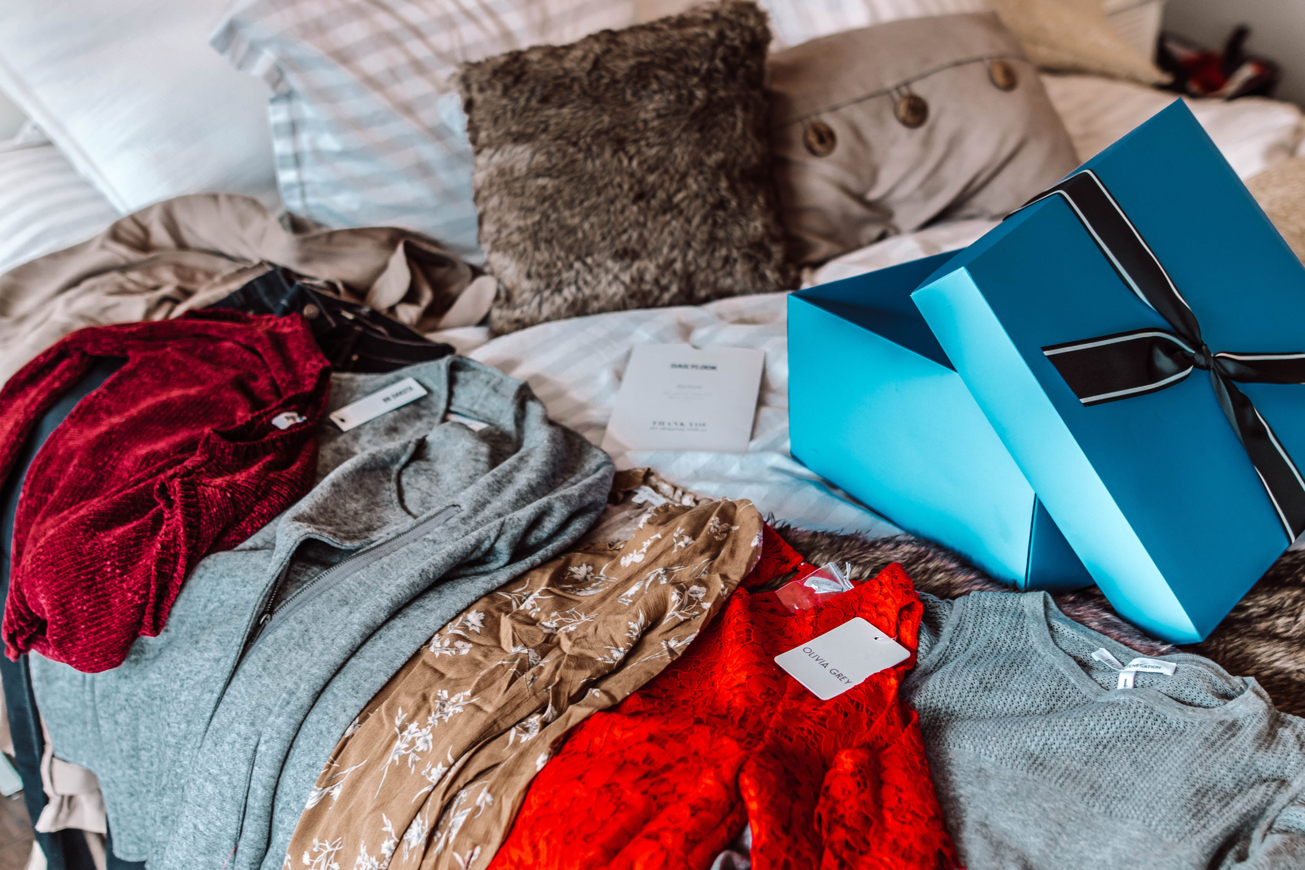 Once I completed the quiz, the results were sent to my personal stylist, Esther. Once that is complete, it was up to Esther to hand-pick up to 12 items to style my box with. Within a few days, DAILYLOOK sent me a an email with a box preview to show me what pieces were picked out especially for me! There was an option to replace up to 3 items that I didn’t like so there are no surprises. Once confirmed, the box was shipped and delivered right to my doorstep.