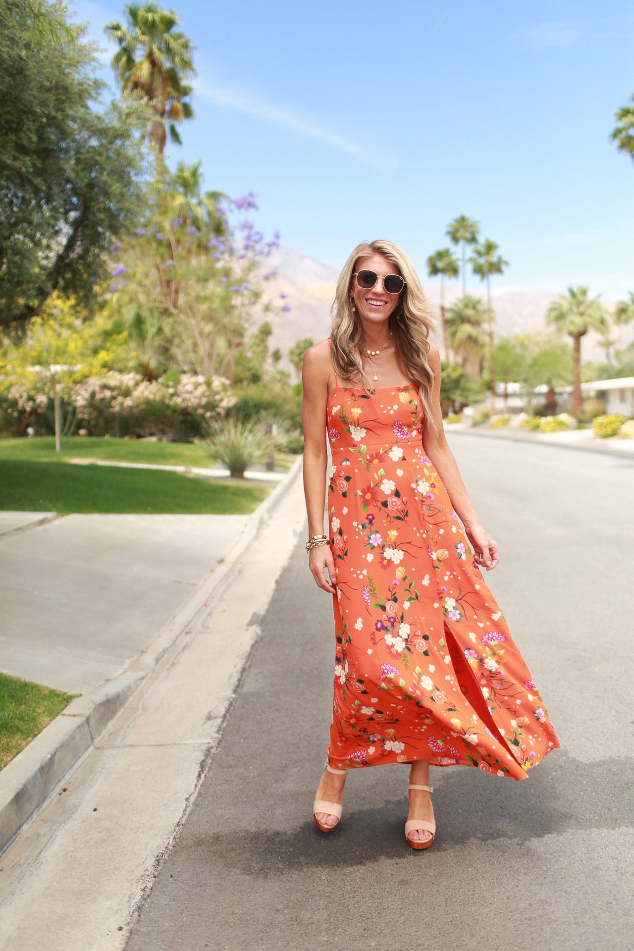 Outfit 4: Esme Floral Maxi Dress while doing a shoot around Palm Springs.
