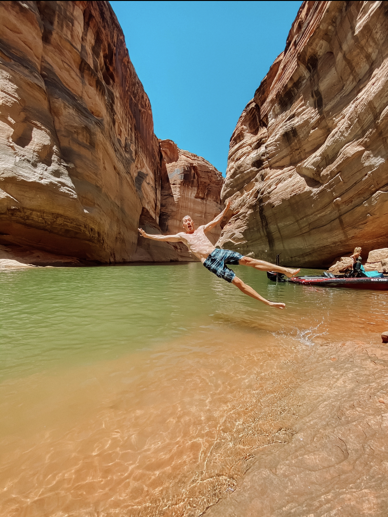 One of the more popular attractions in this area is the Antelope Canyon where you can hike in the skinny canyon located straight east of Page, AZ. This hike requires you to have a tour guide and unfortunately the area was closed due to the COVID19. There is a way to access the lower Antelope Canyon but you can only access it by water. Normally I would say rent kayaks or paddle boards then launch at the Antelope Point boat launch or the Antelope Marina boat launch but they were closed also due to COVID19. If you do plan on visiting Lake Powell and these ramps are closed but you still want to see Antelope Canyon, you can always rent wave runners or a small boat and access the lower Antelope canyon via Antelope Creek, which is channel of water that is part of Lake Powell. We fortunately were able to take my dad’s fishing boat back into the canyon. We did not rent a boat but if I were going to, I found this website where you can rent a boat.