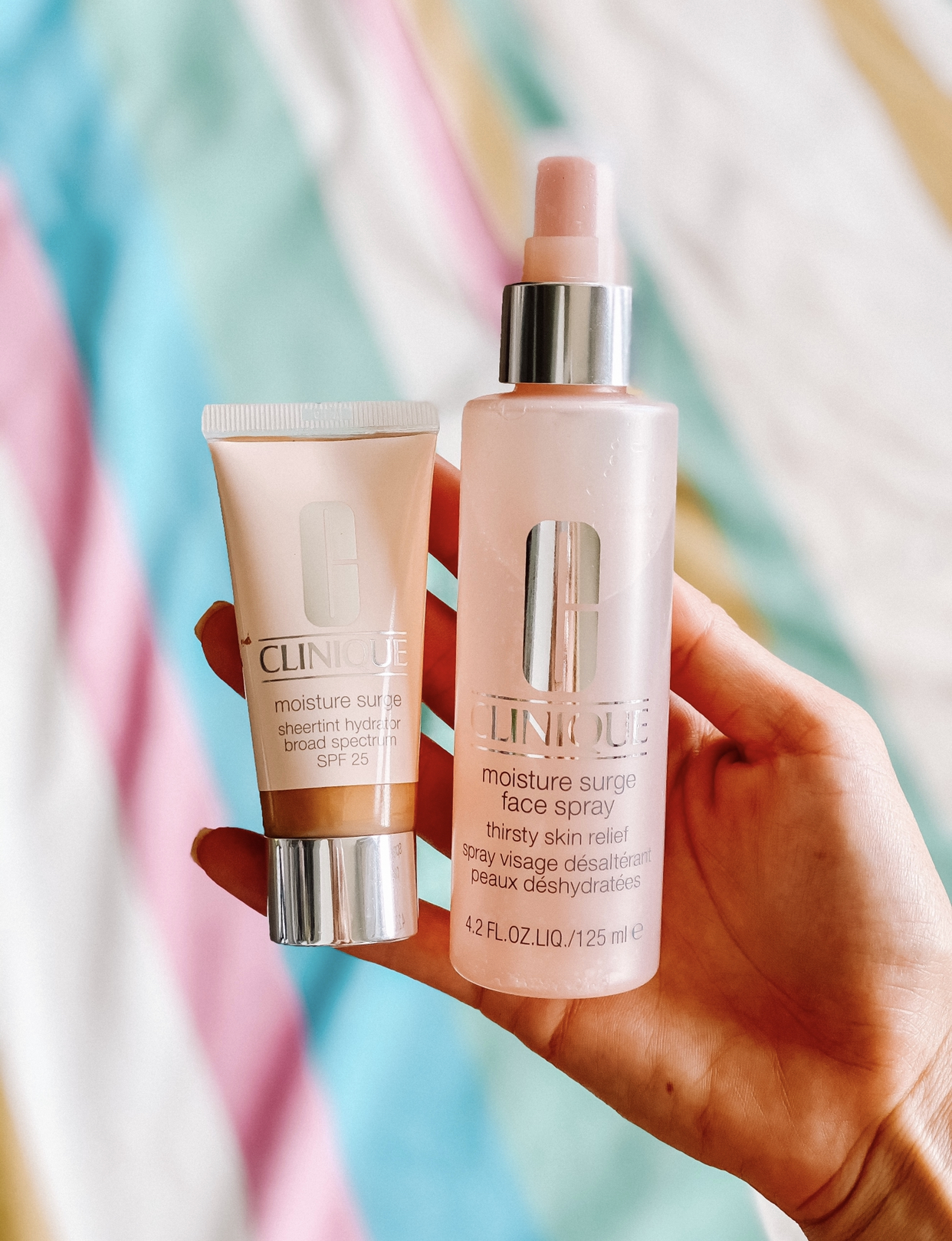 Clinique Moisture Surge Face Spray Skin Relief: I just started using this a few weeks ago before my trip to Arizona and it was a lifesaver. This spray is filled with water and aloe without any oil. Sometimes too much oil on my face can break my face out so this is perfect for reapplying throughout the day when my skin needs a refresh.