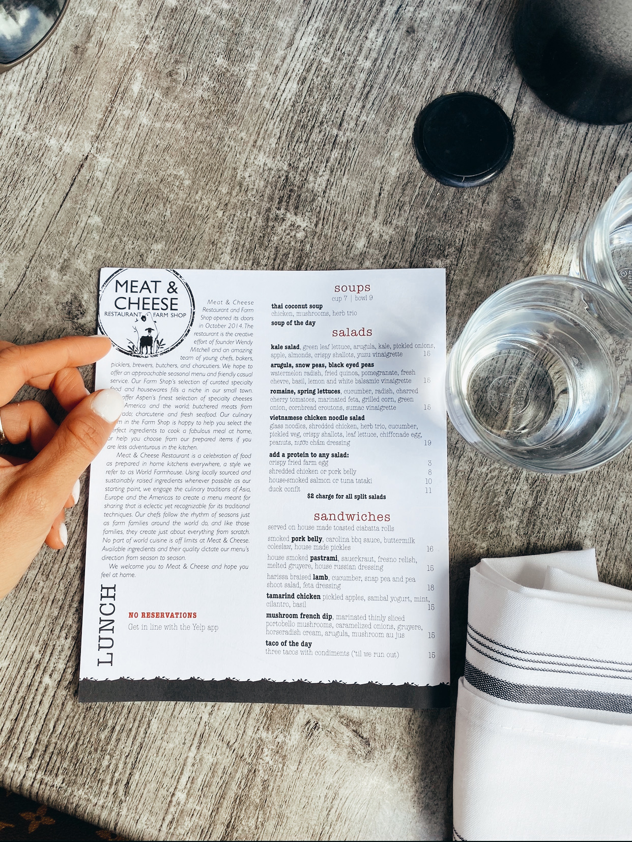 Time to talk about food. After this hike you will most likely be hungry. Theres a place in Aspen I would recommend for lunch called Meat and Cheese Restaurant and Farm Shop. It’s a little pricey but the food is fresh and tastes great!