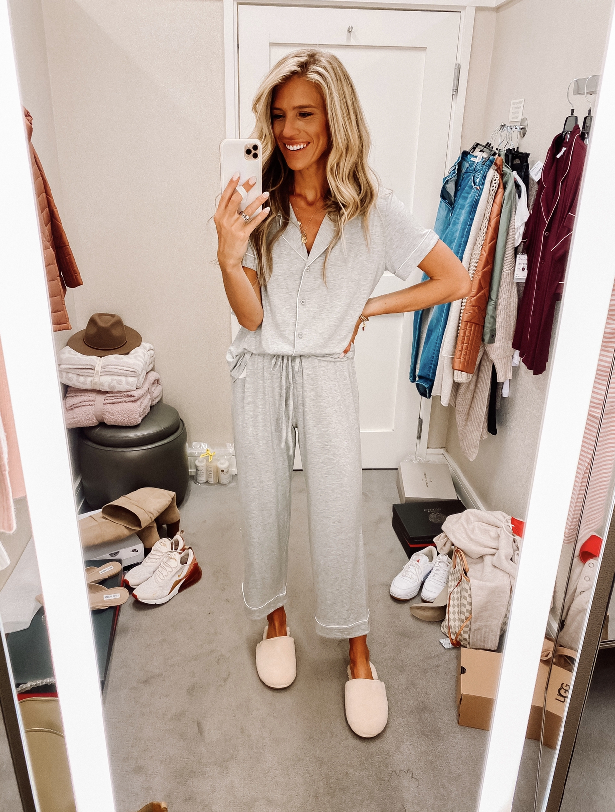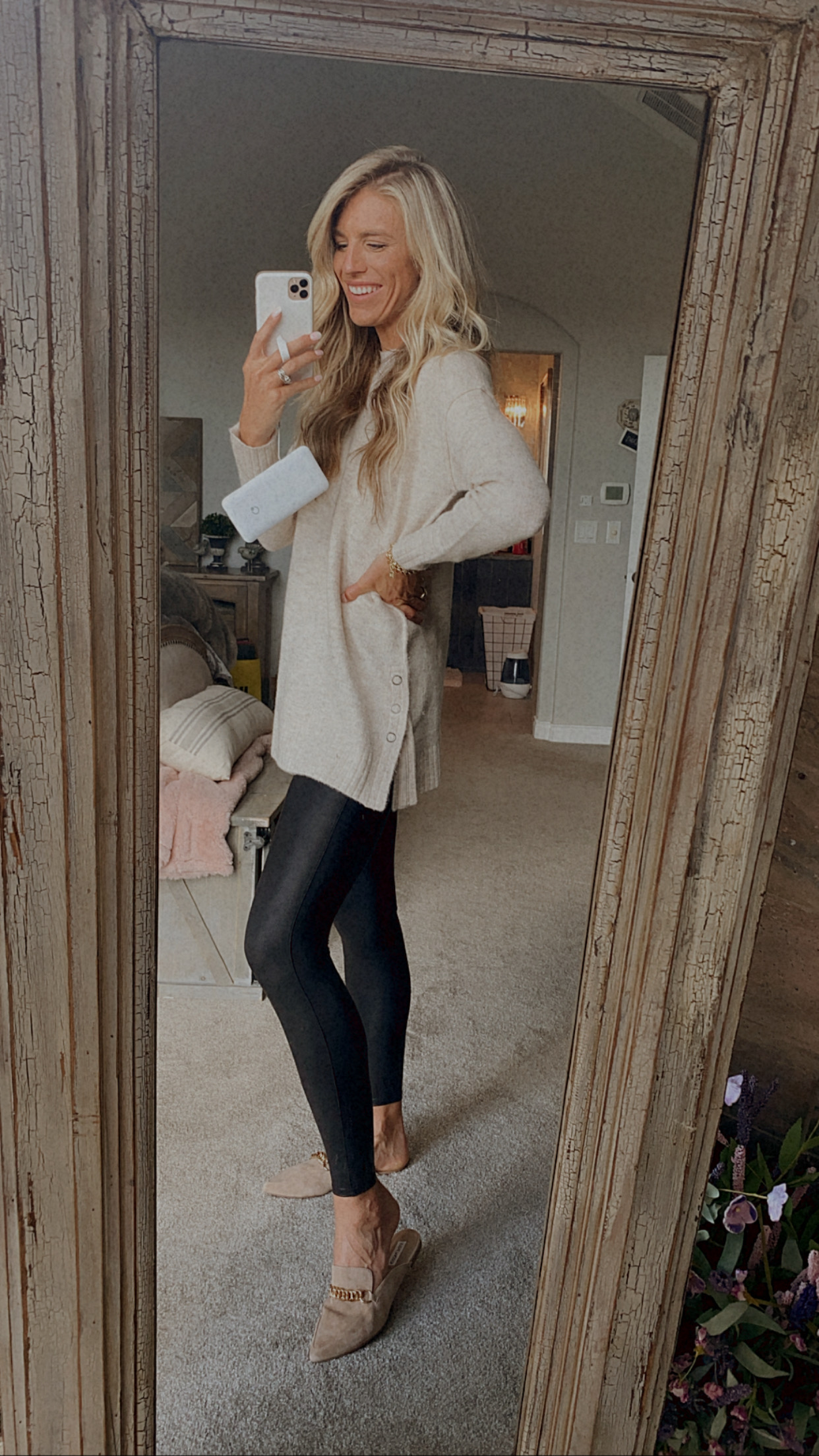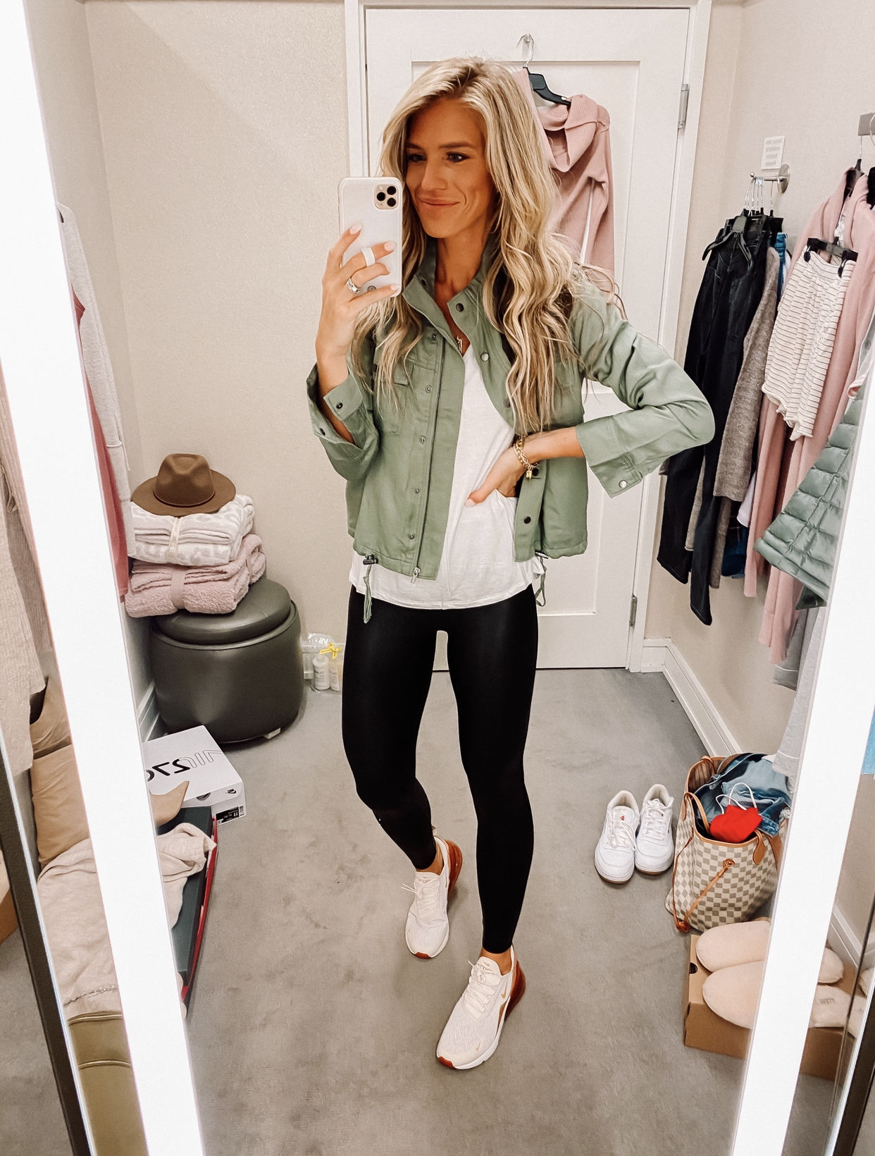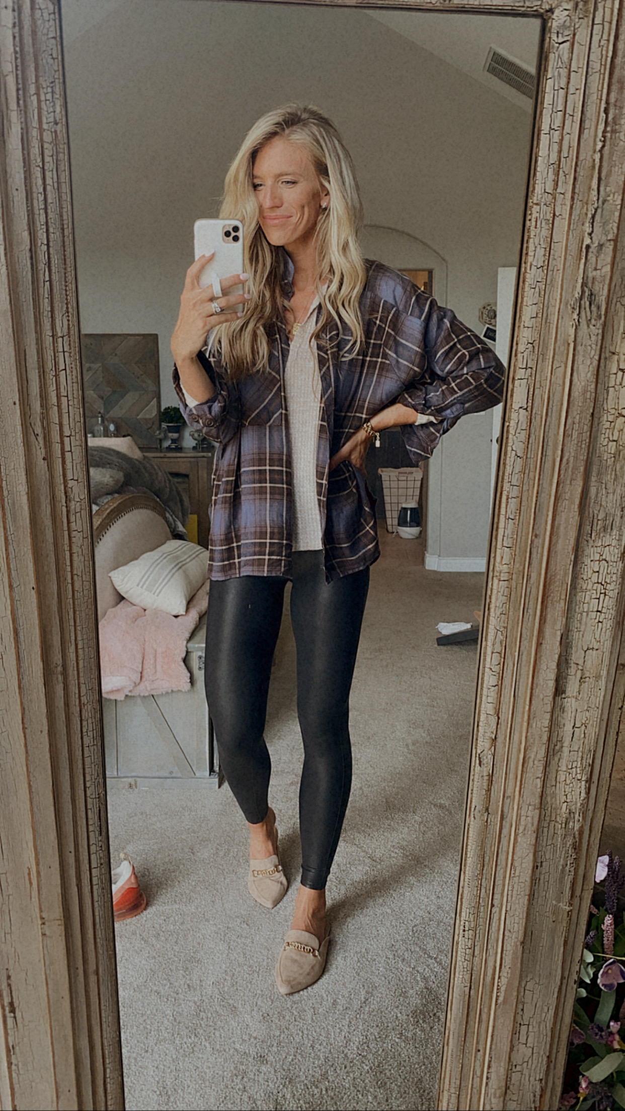 SPANX LEGGINGS: I sized up to a medium, waffle tee I am wearing a small. If you prefer a looser fit size up one size.