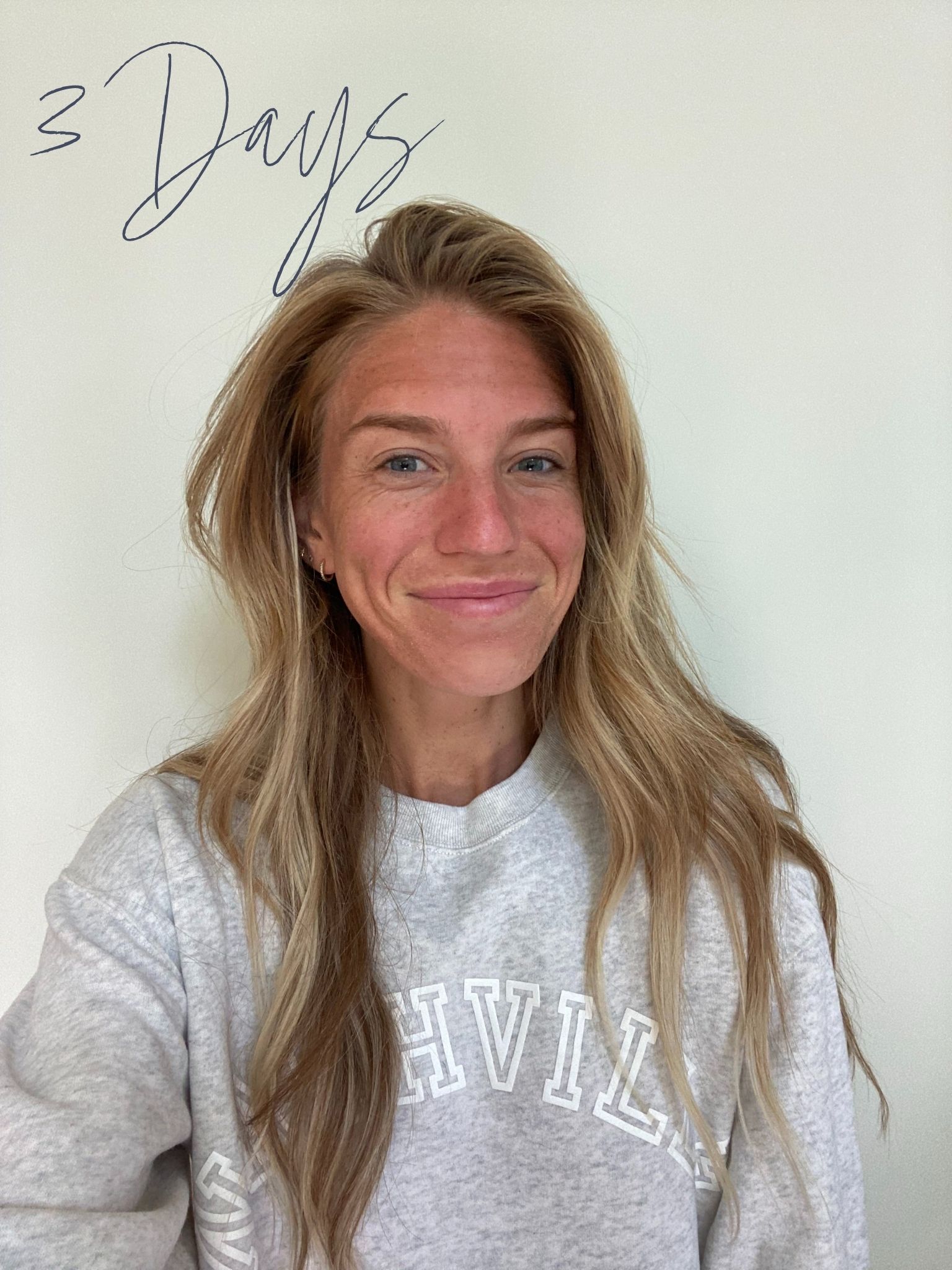 Your face is the most red the first two days. The first day you are going to want to stay in because you cannot wear makeup and your face is pretty red. After the first day you can cover up the red with makeup so I feel comfortable going out and my skin looks normal.