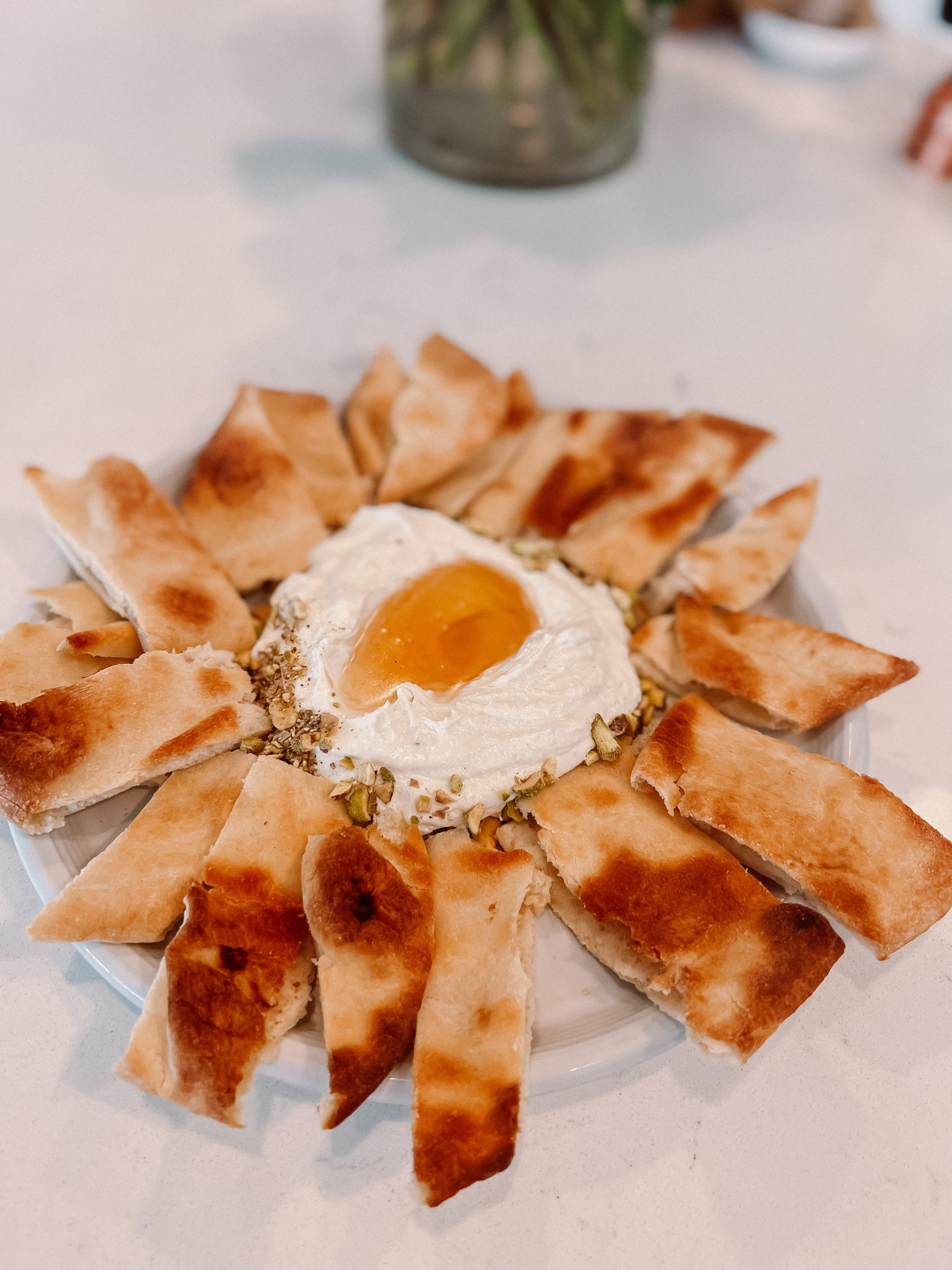 We recently traveled to Alys Beach for a quick trip and we got honey whipped feta as an appetizer at one of our favorite restaurants, The Citizen. We made honey whipped feta for the first time at Easter this year because we were so obsessed with it. It is the perfect combo of salty and sweet and it makes a great party appetizer. The recipe is quick and easy to make AND uses little and simple ingredients! I was able to “whip” it together in 5 minutes.