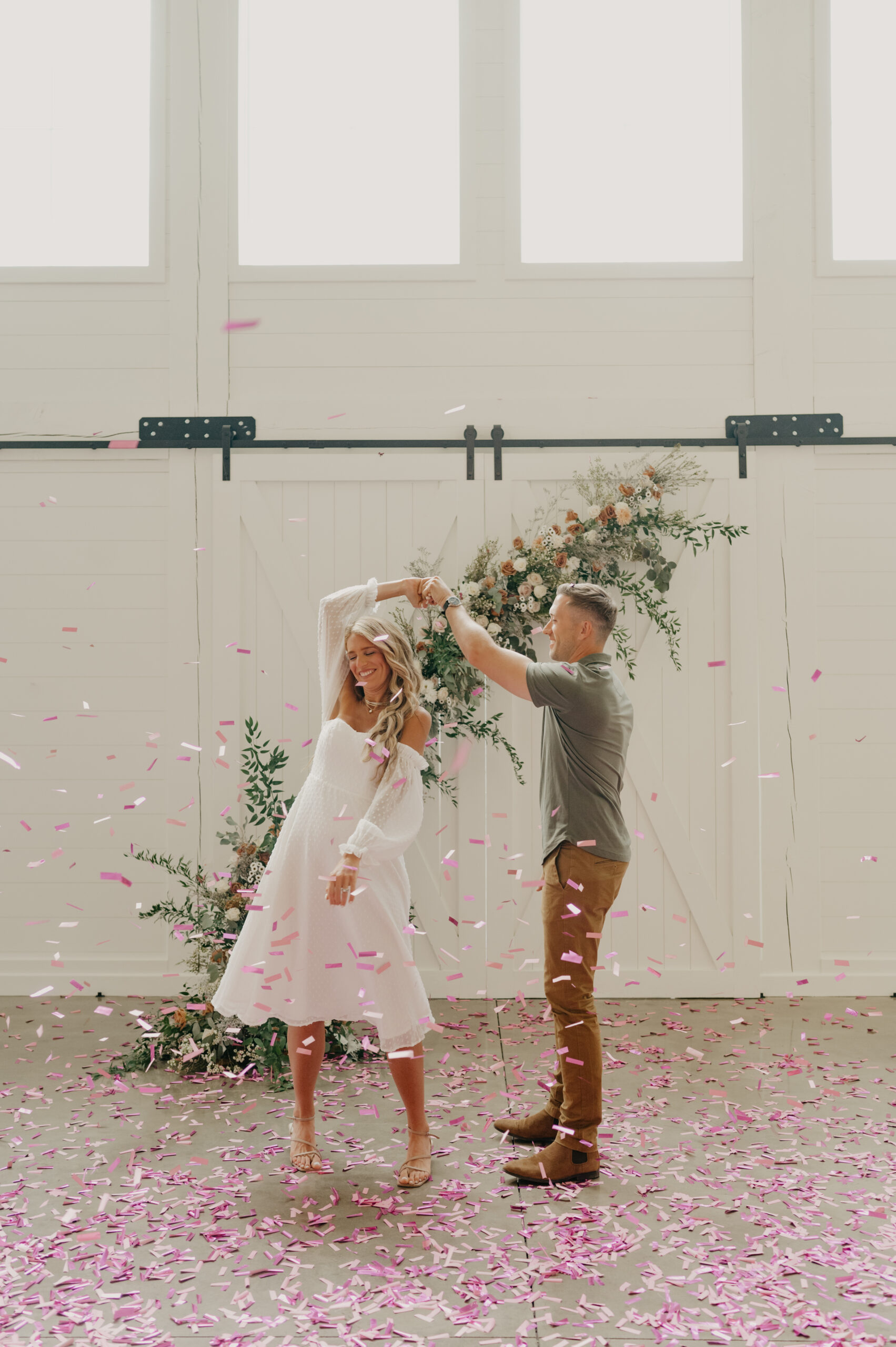 If you are someone who wants to have great photos and atmosphere I highly recommend finding a venue that has white or neutral walls with a ton of natural lighting. This makes photos and decorating SO much easier. If you are in the Indy area, The Sixpence is the most beautiful venue and it was perfect for our event. Every photo taken turned out so good and it was so easy for picture taking.