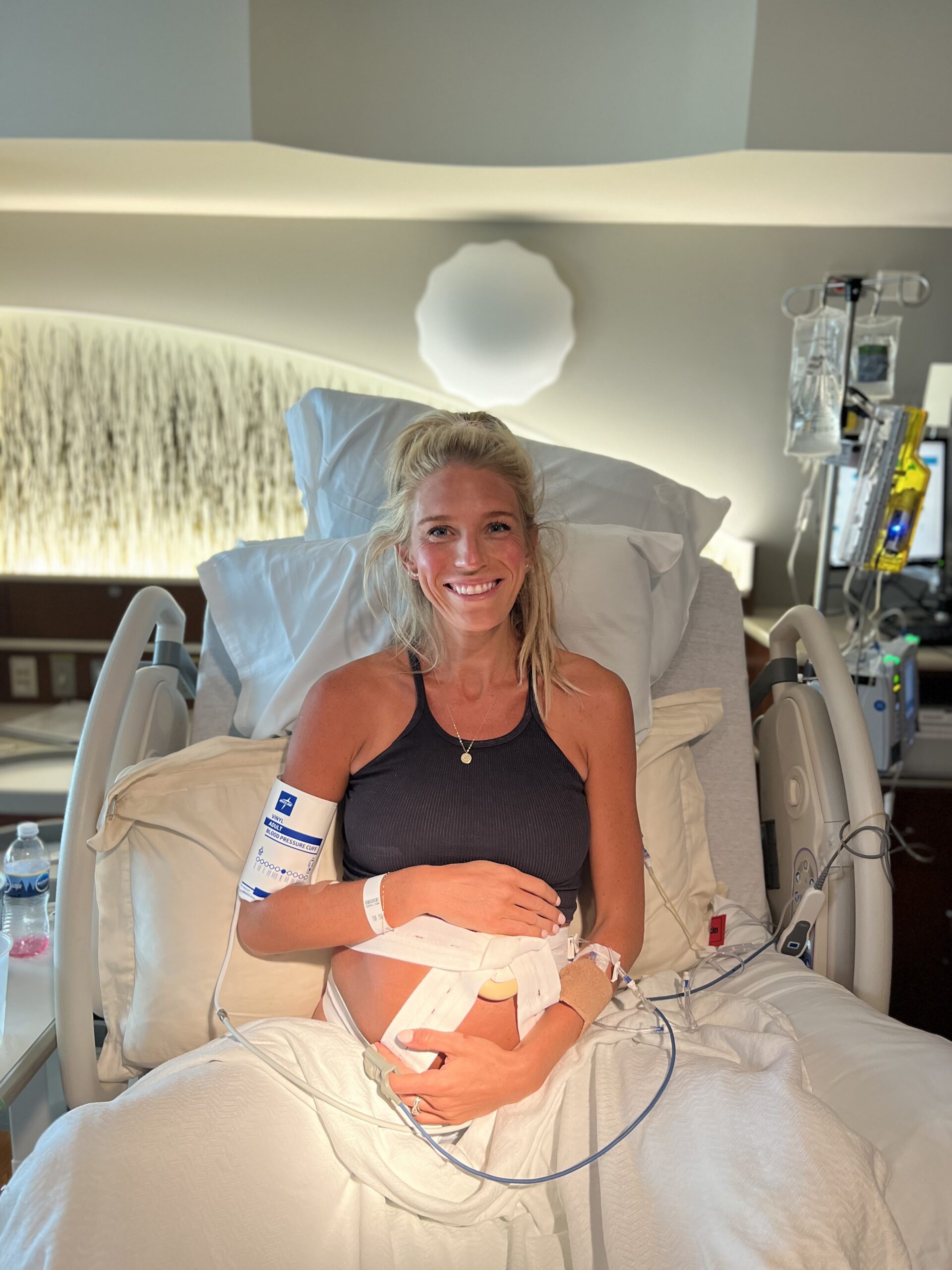 I packed a sports bra and laboring gown to wear but I had a friend recommend to me to wear this FP movement ribbed tank during labor and it was the best decision for me. It was something that I would normally wear comfortably around the house so why not have a baby in it! HA! I didn’t wear a bra or anything under but it also felt supportive and not loose.